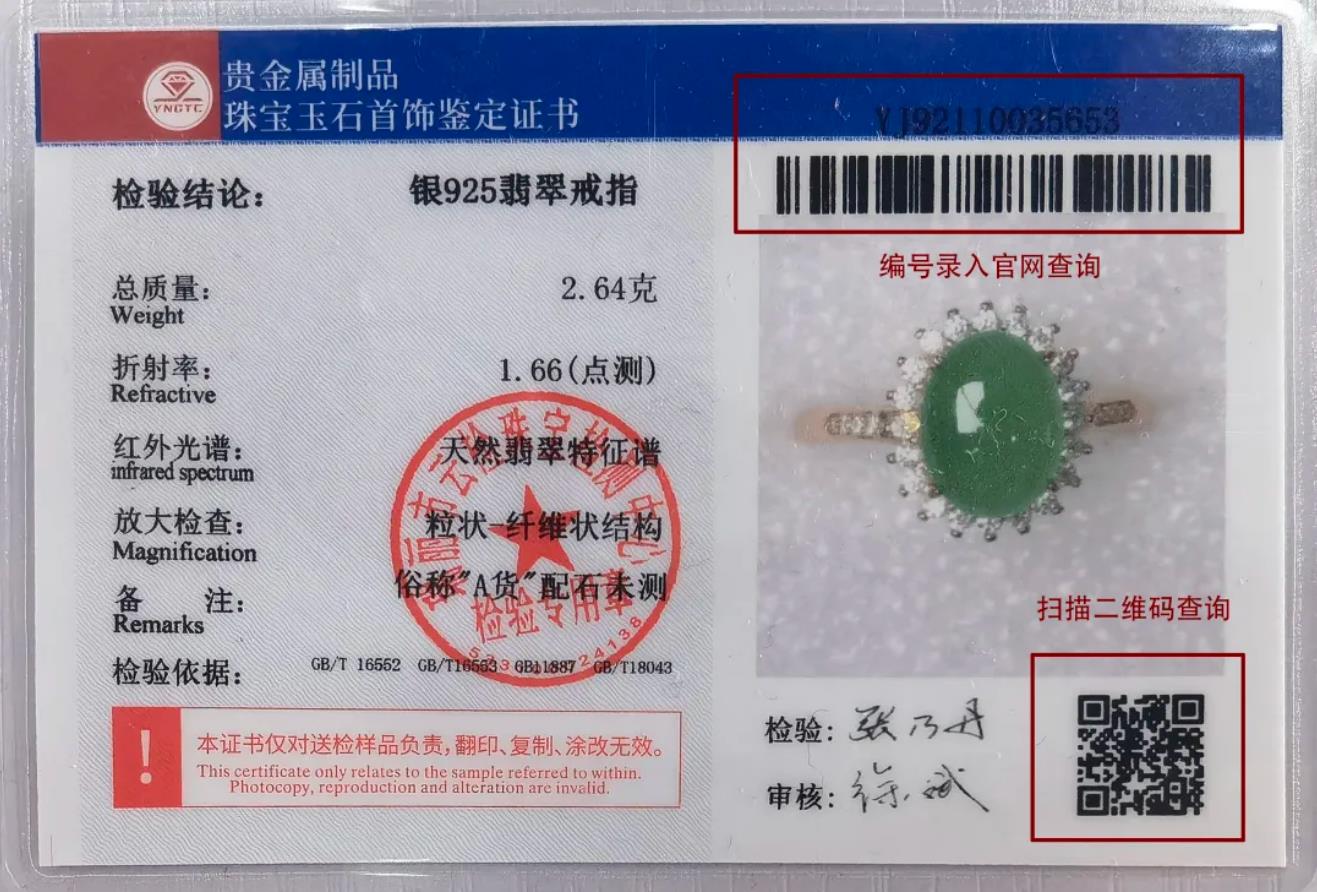 登录鉴定机构官网,输入鉴定证书的相应编号,查询所购珠宝玉石的相关信息,并进行逐一核实。