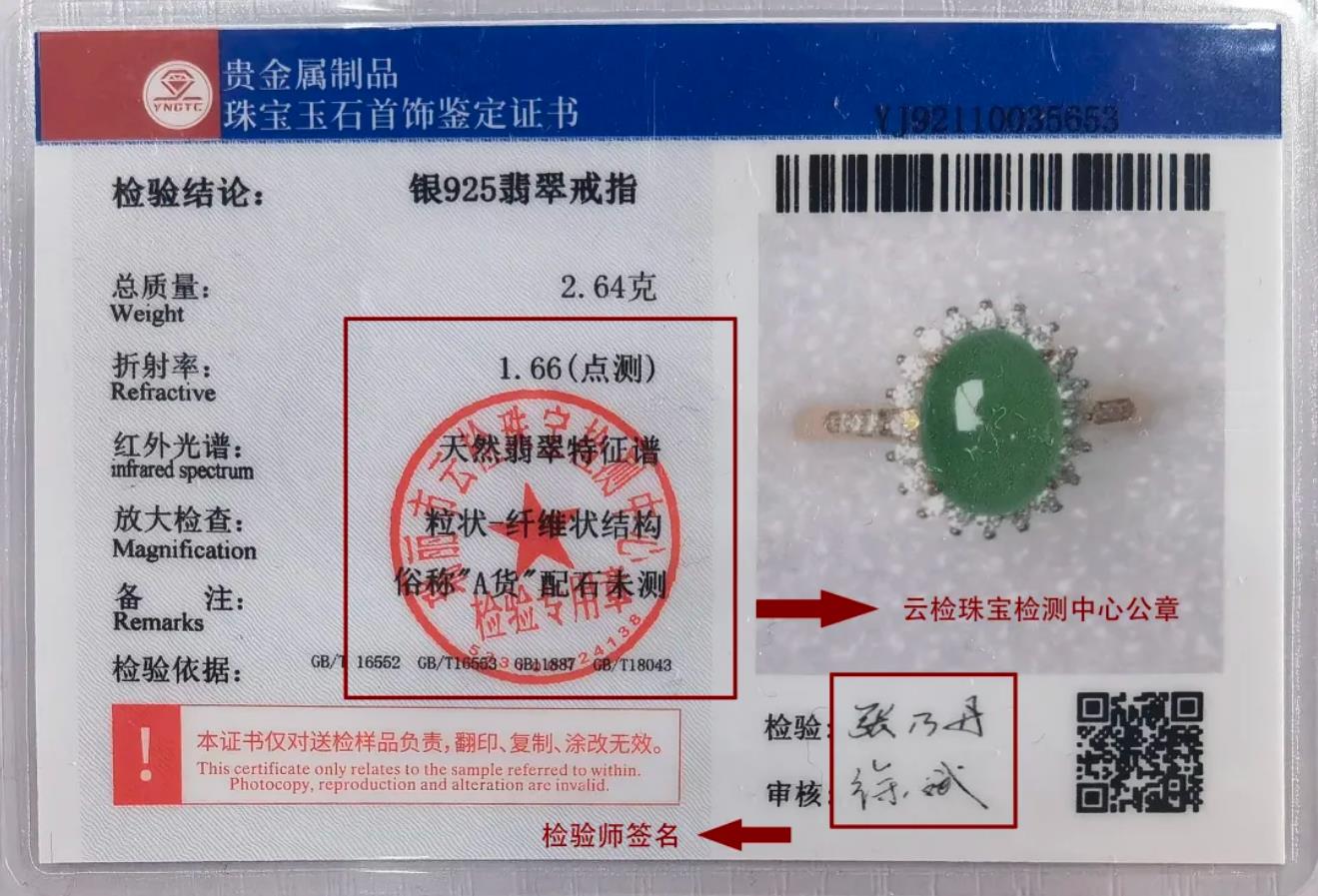 星空娱乐珠宝玉石首饰鉴定证书背面有单位公章和检验师签名