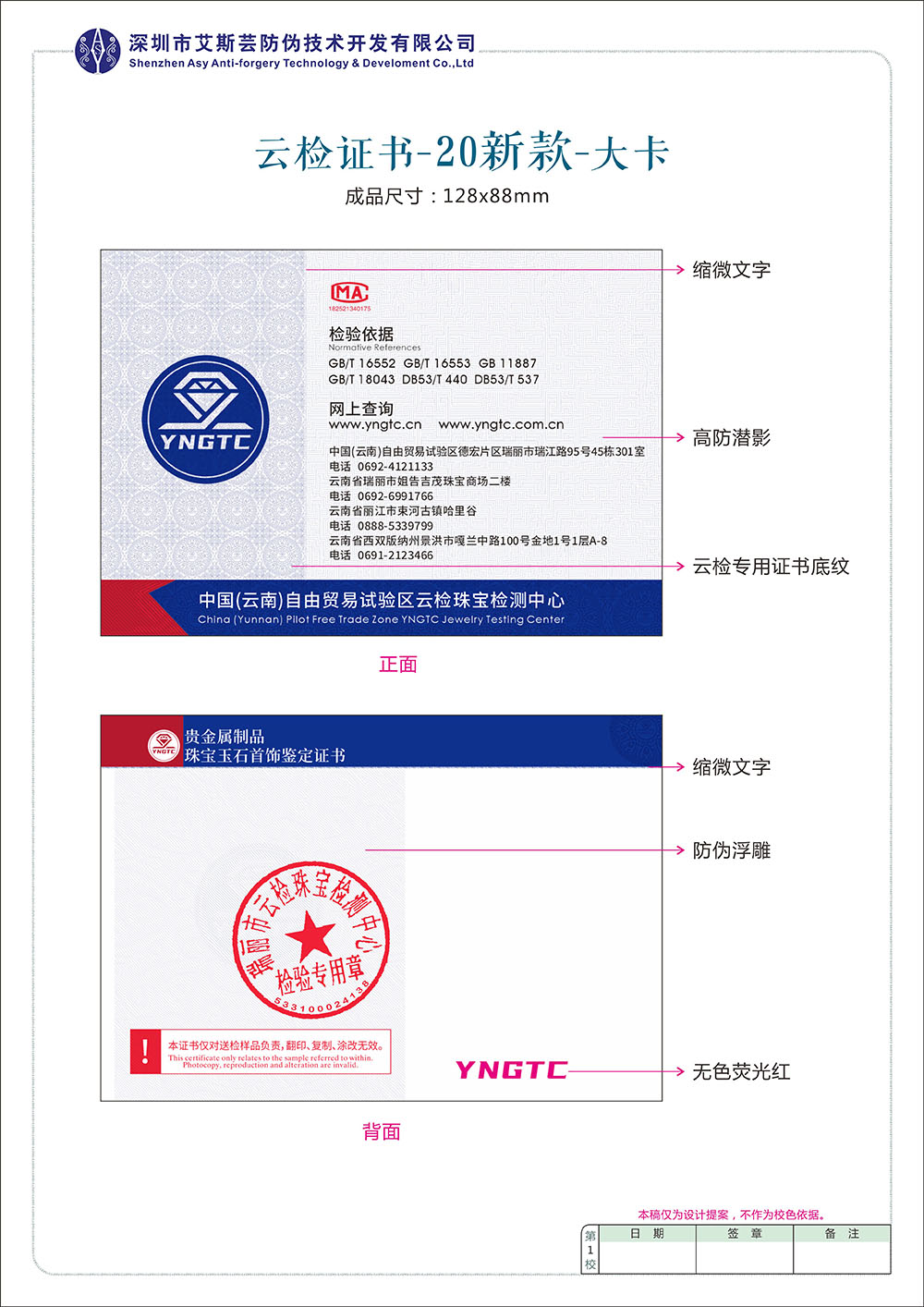 星空娱乐珠宝玉石首饰鉴定证书在设计和印刷时作了相应的防伪措施。